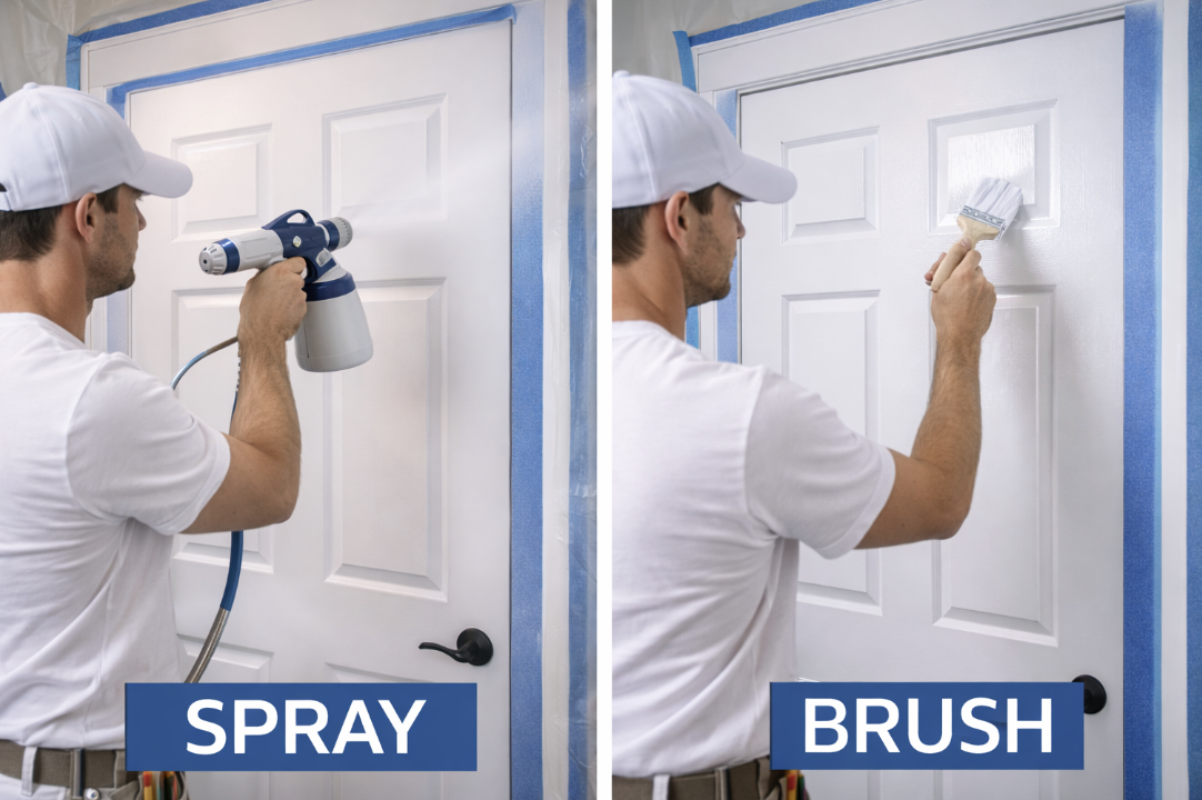 Understanding the difference between spray and brush methods helps ensure your doors look smooth, durable, and professionally finished.